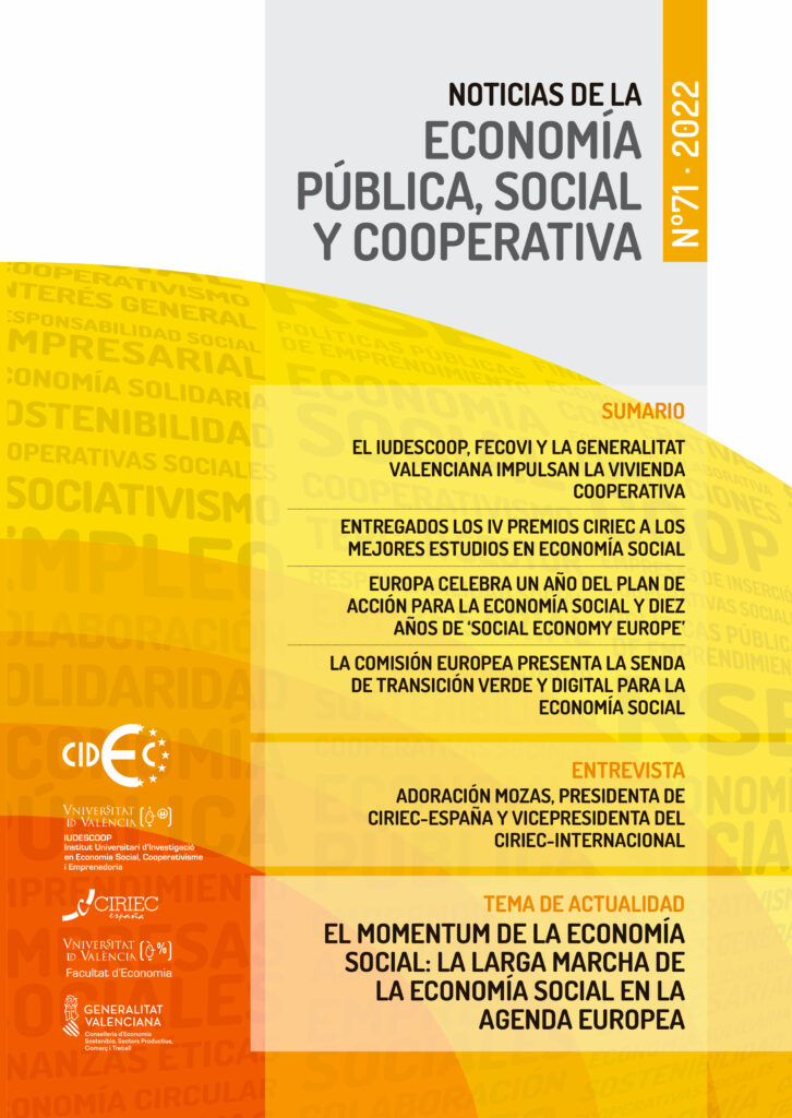En los últimos 12 meses se han activado diversas iniciativas de profundo calado para el fomento de la economía social tanto desde las instituciones europeas e internacionales, como la Comisión Europea, la Conferencia Internacional del Trabajo y el Consejo de la OCDE, como desde el Gobierno de España. En efecto, el 16 de junio pasado, la Conferencia Internacional del Trabajo aprobaba la Resolución ILC.110/Resolución II de la OIT sobre ‘Economía social y solidaria y trabajo decente”, 16.6.20222. En ella definía el concepto de economía social, sus impactos positivos en la economía y sociedad e impelía a los gobiernos a implementar diferentes políticas de apoyo a la misma. En Europa, la Comisión Europea aprobaba el 9 de diciembre del año pasado un Plan plurianual europeo de acción para la economía social. El 14.11.2022 se presentaba en Bruselas el Transition Pathway sobre Economía Social y Proximidad4, el tercer Pathway de los que se han activado hasta ahora de los 14 clusters industriales existentes. Estos Transition Pathway son acciones de gran envergadura de la Comisión Europea en el marco de su Política Industrial, algo poco común en las políticas de los Estados Miembros. Ese mismo día se reunía de modo presencial el Grupo de expertos de la Comisión Europea sobre economía social y empresas sociales (GECES), órgano consultivo de la Comisión en este ámbito y que ha contribuido significativamente a fundamentar estas iniciativas. El 10.6.2022, el Consejo de la OCDE aprobaba una Recomendación sobre ‘Economía social y solidaria e innovación social’, la cual también se alineaba en esta visión de promoción de la economía social y solidaria.